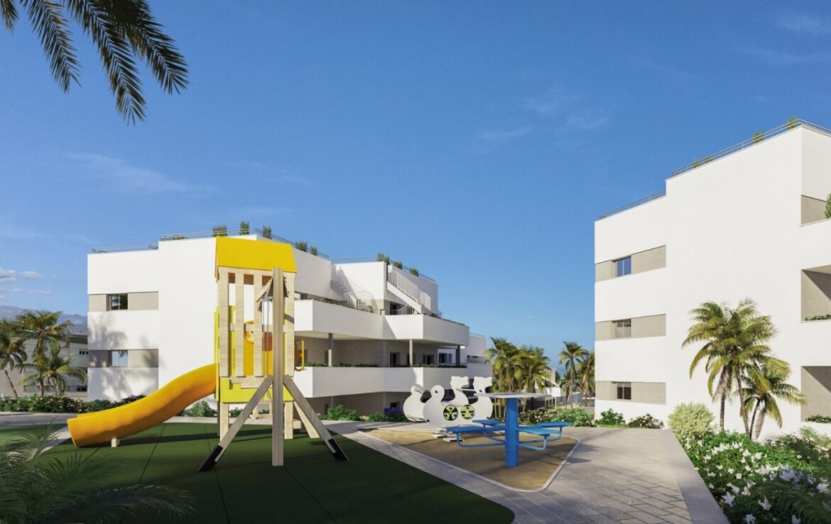 Piso de tres dormitorios, dos baños, amplio salón comedor con cocina office. Destaca su terraza de 70m2.~~Conjunto residencial de obra nueva ubicado en Torre del Mar, a 800 m de la playa. ~~Consta de 69 viviendas de 2 y 3 dormitorios distribuidas en 4 edificios de planta baja más dos alturas. ~~Todas las viviendas disponen de magníficas terrazas con orientación Sur y Suroeste, muchas de las cuales disponen de estupendas vistas al mar. ~~Las adosadas disponen de un espectacular solárium en cubierta. El diseño de las viviendas, con dos fachadas exteriores opuestas, aporta una luminosidad y ventilación óptimas en términos de habitabilidad y eficiencia energética. Todas las viviendas disponen de garaje subterráneo y trastero.~~Estupendas zonas comunes, con piscina, gimnasio, zona deportiva y zona de juegos, todo ello en un recinto privado y ajardinado.~~Situada en la Axarquía de Málaga y cuenta con un clima privilegiado, considerado de los mejores de Europa. Es un municipio dinámico y que cuenta con todos los servicios, como hospital, colegios, institutos, centros comerciales… Cabe destacar la calidad de sus largas playas y de su entorno natural, que hacen de Torre del Mar un atractivo destino turístico.~»Donde las propiedades viven»