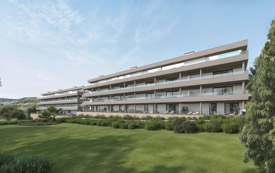 Piso en planta baja de un dormitorio, baño, salón-comedor, cocina office, y terraza con espectaculares vistas.~~Destaca la calidad de sus acabados. Ubicado en una de las zonas más atractivas de la Costa del Sol, debido a su calidad de vida y amplia oferta de ocio.~~Recinto cerrado con piscina comunitaria con iluminación decorativa nocturna, zona verdes y área de solárium para poder disfrutar del baño y del sol, gimnasio, garita de control, zona zen y putting green (golf).~~Disponible en otras alturas y tamaños.~»Donde las propiedades viven»