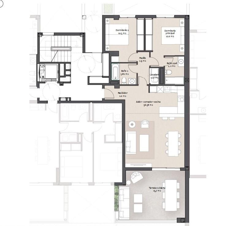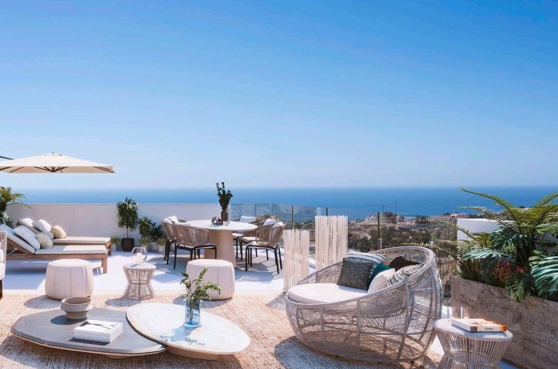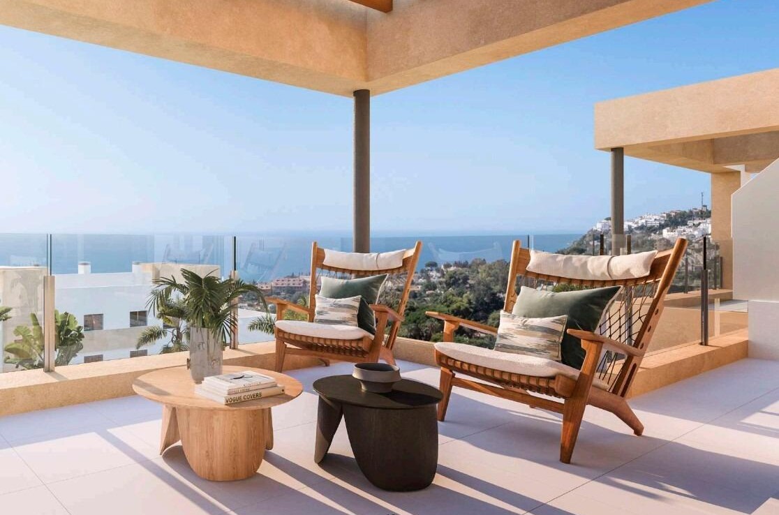 Propertalia les presenta este exclusivo ático de dos dormitorios y dos baños. Ofrece un diseño moderno y funcional, con un amplio salón-comedor conectado a una cocina office y una impresionante terraza que regala vistas panorámicas al mar.~~La disposición escalonada del edificio maximiza la entrada de luz natural, iluminando todos los espacios con una calidez única. Su cuidada distribución y acabados de alta calidad convierten cada rincón en un lugar ideal para relajarse, cocinar o disfrutar en familia.~~Ubicado en un residencial privado, podrás acceder a piscinas comunitarias, zonas ajardinadas y un gimnasio. Además, incluye dos plazas de aparcamiento y trastero en el precio.~~Disponible en diferentes tipologías y alturas. Haz de este ático tu hogar frente al Mediterráneo.~~~»Donde las propiedades viven»