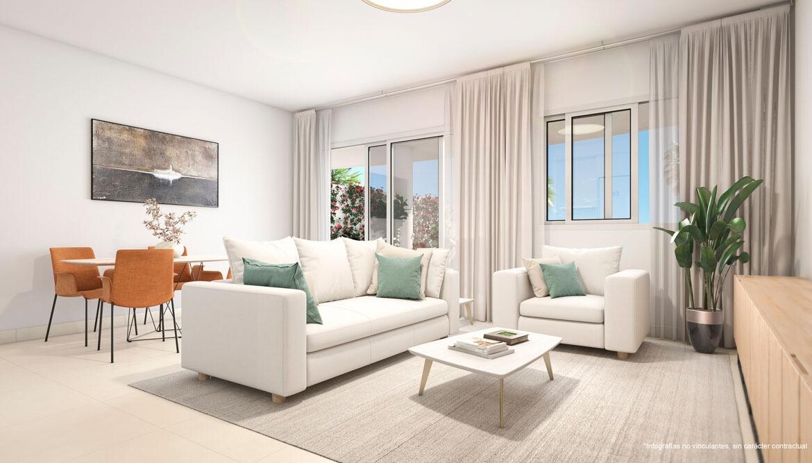 Planta baja de tres dormitorios, dos baños amplio salón comedor con cocina y espectacular terraza con vistas increíbles. ~~Los espacios interiores están cuidadosamente concebidos como estancias funcionales, llenas de luz, que te harán la vida más fácil y te permitan disfrutar en todo momento del estilo de vida Mediterráneo.~~La arquitectura sostenible permite preservar el entorno y reducir el impacto ambiental además de ofrecer un importante ahorro energético.~~Las áreas comunes elevan el concepto slow living a otro nivel, donde la tranquilidad es protagonista. Cuenta con piscinas comunitarias, parque de juegos, jardines, barbacoa, zona fitness. ~~La vivienda dispone de plaza de aparcamiento y trastero. ~~~~»Donde las propiedades viven»